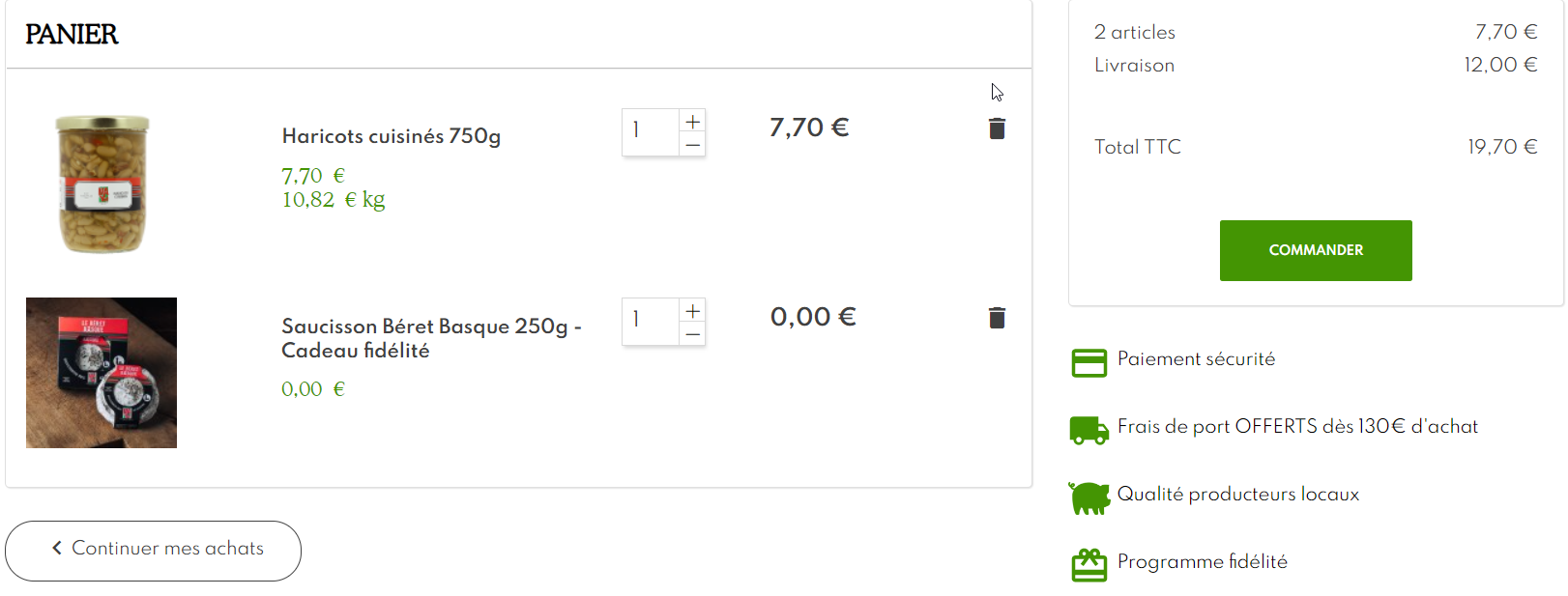 Et voilà, votre cadeau est ajouté à votre panier, vous pouvez valider votre commande ou continuer vos achats.